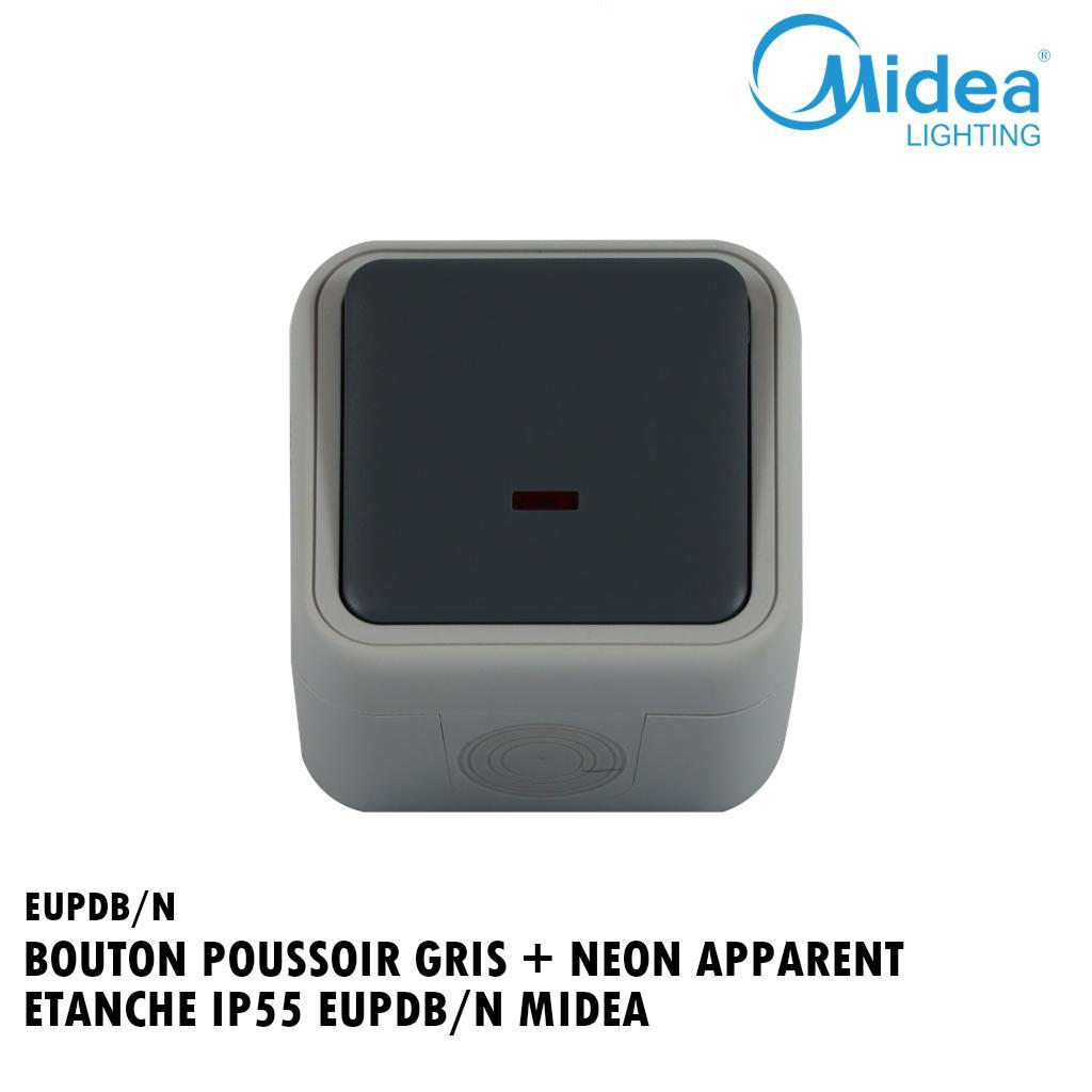 BOUTON POUSSOIR GRIS + NEON APPARENT ETANCHE IP55 EUPDB/N MIDEA