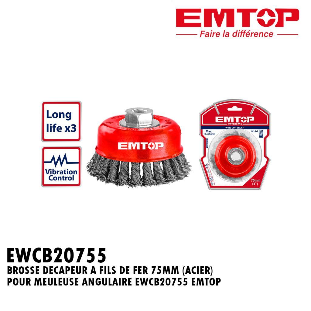 BROSSE DECAPEUR A FILS DE FER 75MM (ACIER) POUR MEULEUSE ANGULAIRE EWCB20755 EMTOP