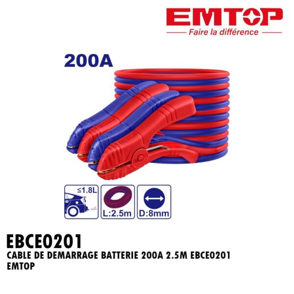 CABLE DE DEMARRAGE BATTERIE 200A 2.5M EBCE0201 EMTOP