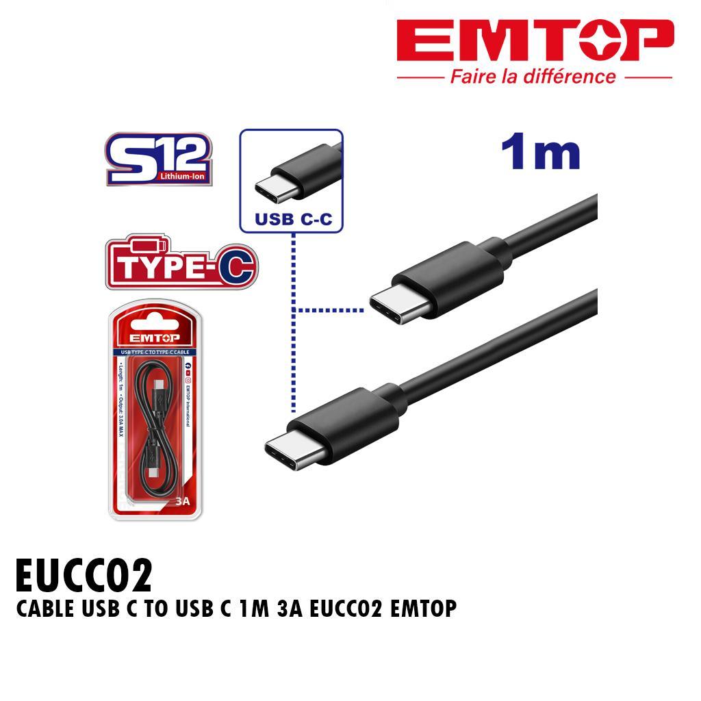CABLE USB C TO USB C 1M 3A EUCC02 EMTOP