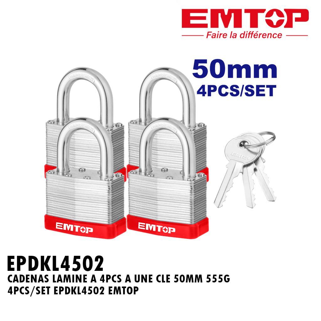 CADENAS LAMINE A CLE 50MM 555G 4PCS/SET EPDKL4502 EMTOP