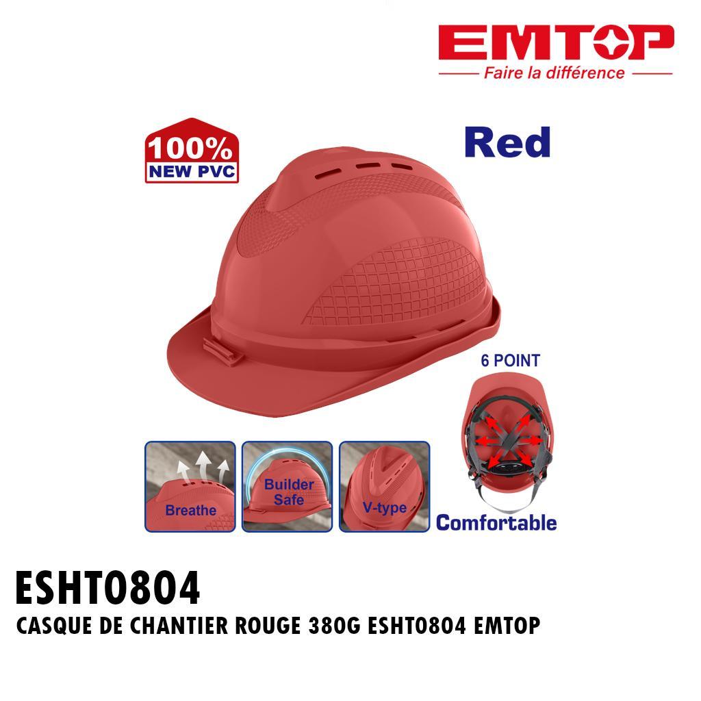 CASQUE DE CHANTIER ROUGE 380G ESHT0804 EMTOP