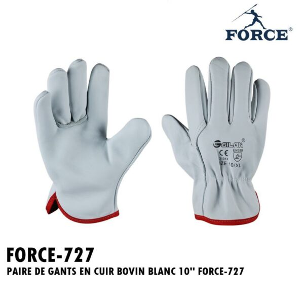 PAIRE DE GANTS EN CUIR BOVIN BLANC 10 » FORCE-727