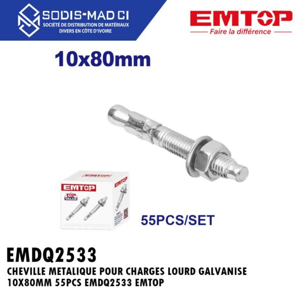 CHEVILLE METALIQUE POUR CHARGES LOURD GALVANISE 10X80MM 55PCS EMDQ2533 EMTOP