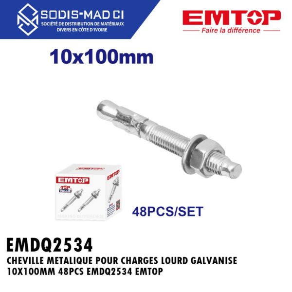 CHEVILLE METALIQUE POUR CHARGES LOURD GALVANISE 10X100MM 48PCS EMDQ2534 EMTOP