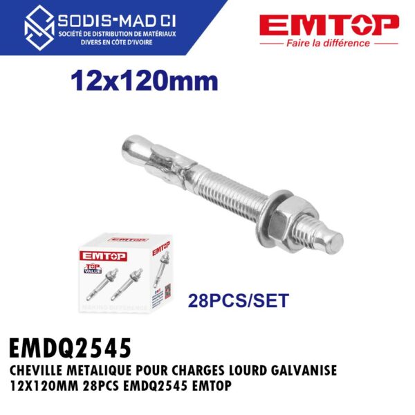 CHEVILLE METALIQUE POUR CHARGES LOURD GALVANISE 12X120MM 28PCS EMDQ2545 EMTOP