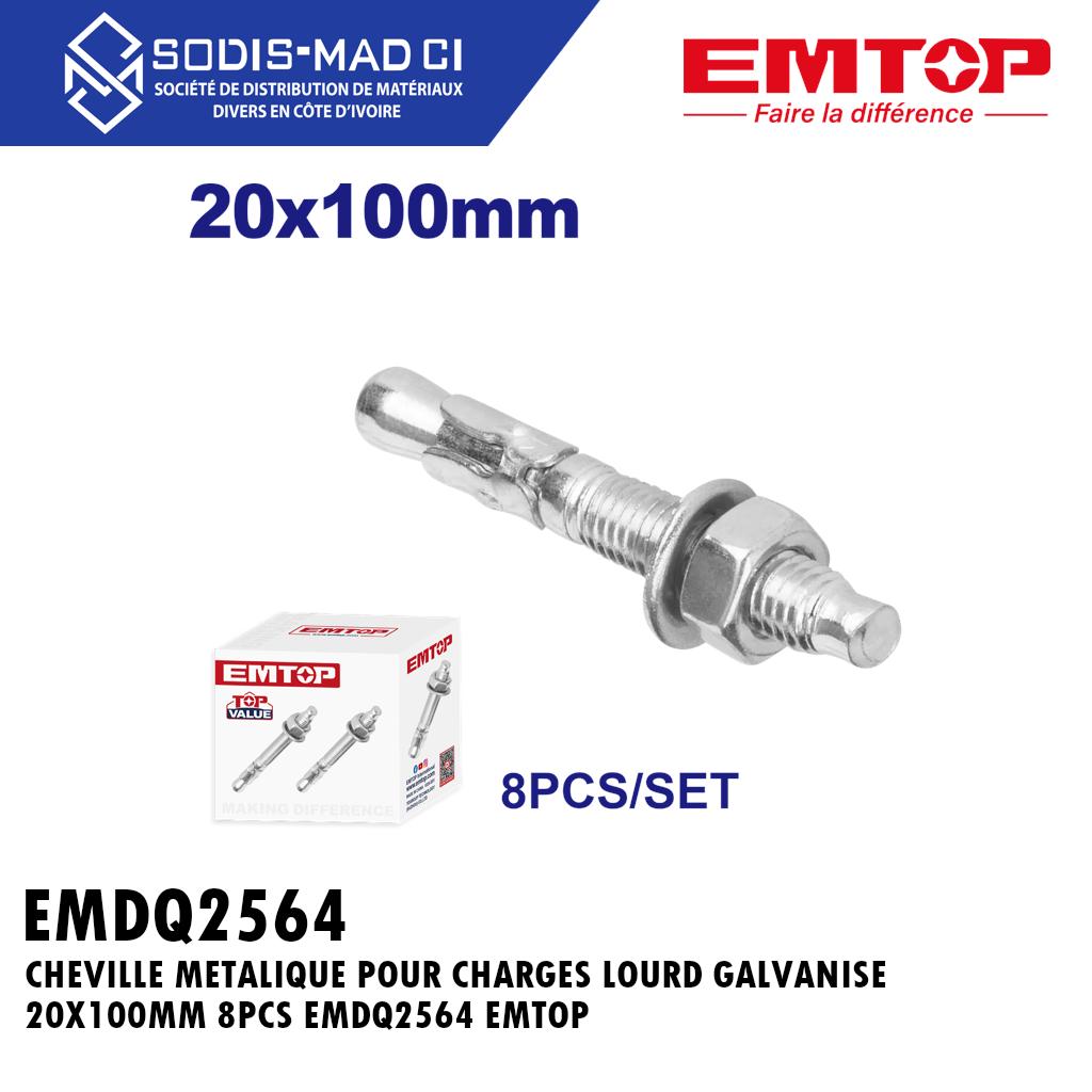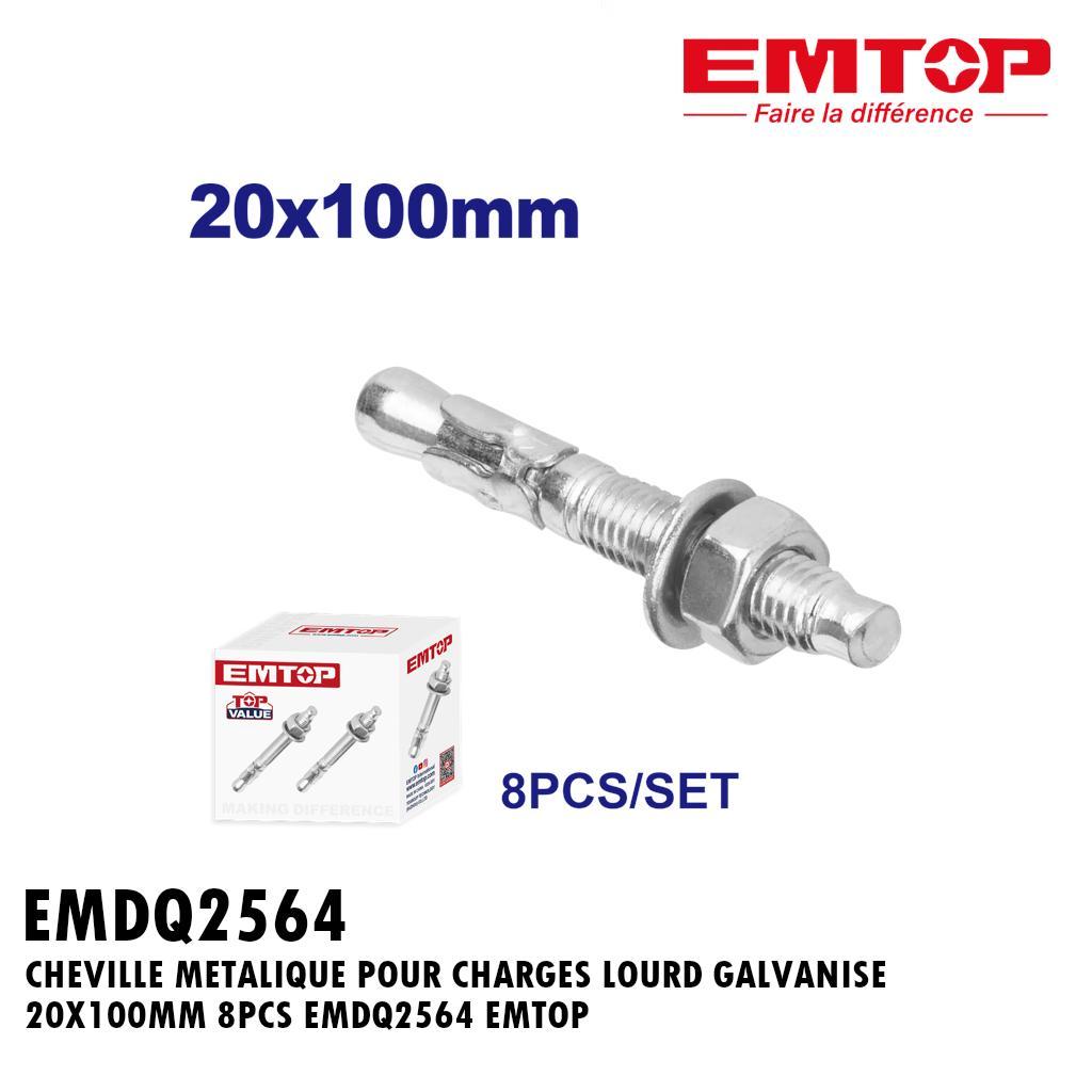 CHEVILLE METALIQUE POUR CHARGES LOURD GALVANISE 20X100MM 8PCS EMDQ2564 EMTOP