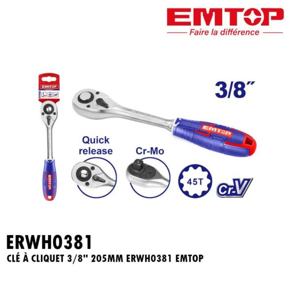 CLÉ À CLIQUET 3/8″ 205MM ERWH0381 EMTOP