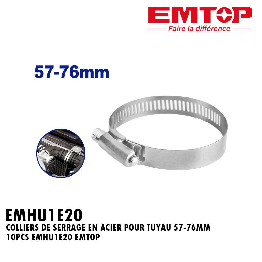 COLLIERS DE SERRAGE EN ACIER POUR TUYAU 57-76MM 10PCS EMHU1E20 EMTOP