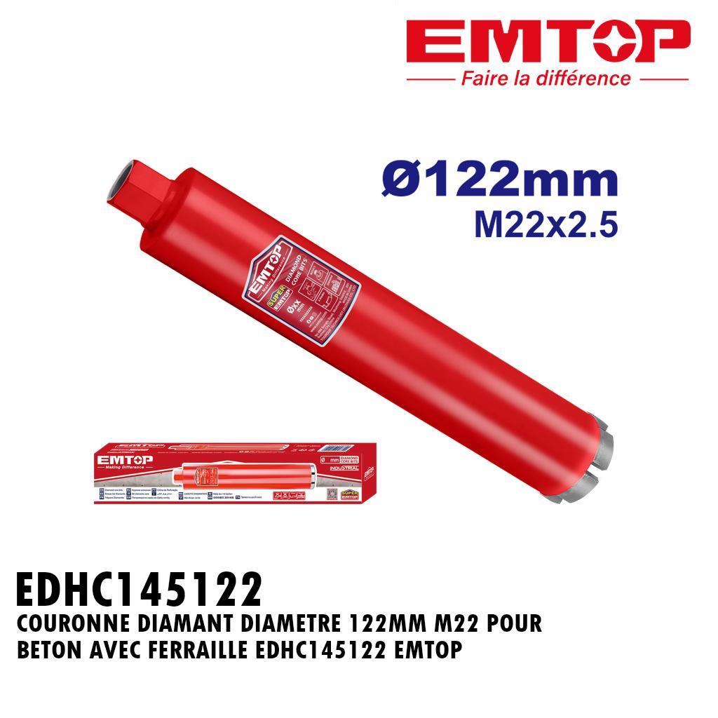 COURONNE DIAMANT DIAMETRE 122MM M22 POUR BETON AVEC FERRAILLE EDHC145122 EMTOP