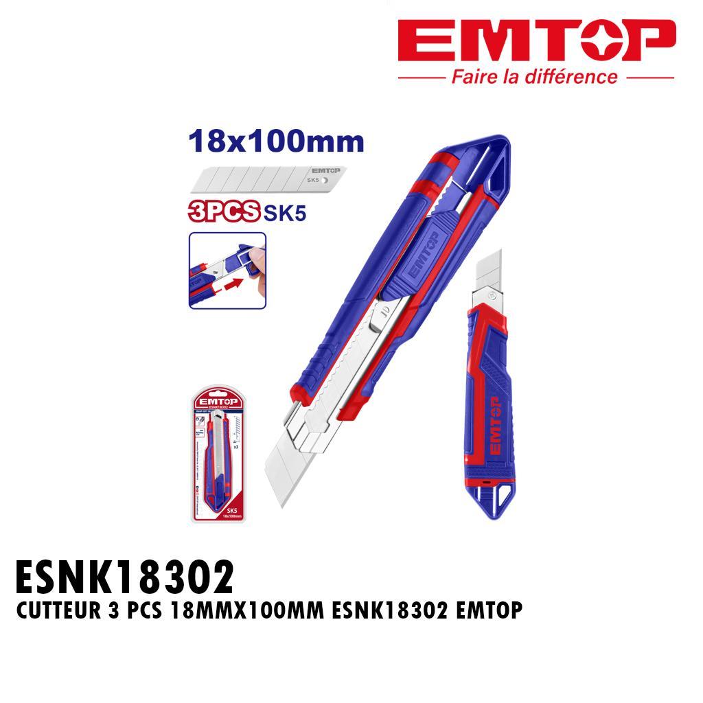 COUTEAU A LAME A ENCLIQUETER 3 PCS 18MMX100MM ESNK18302 EMTOP