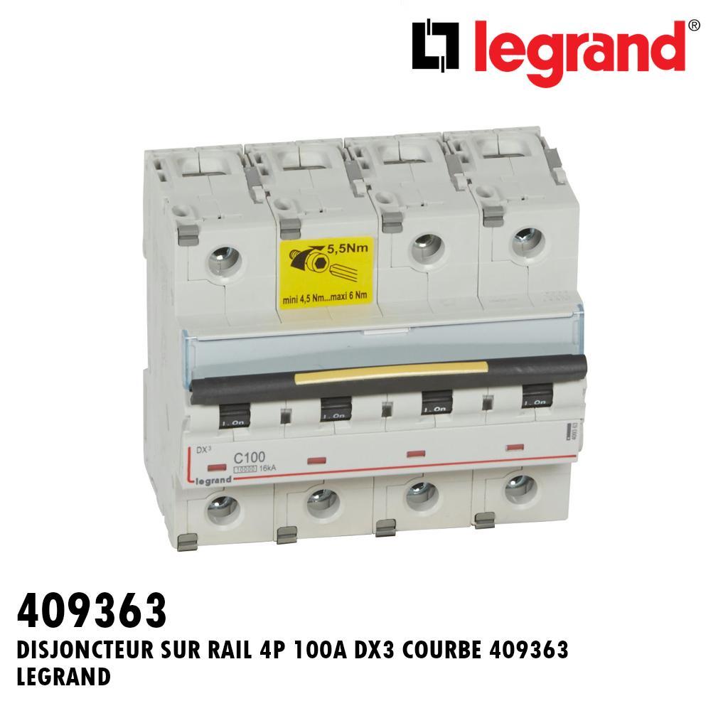 DISJONCTEUR SUR RAIL 4P 100A DX3 COURBE 409363 LEGRAND
