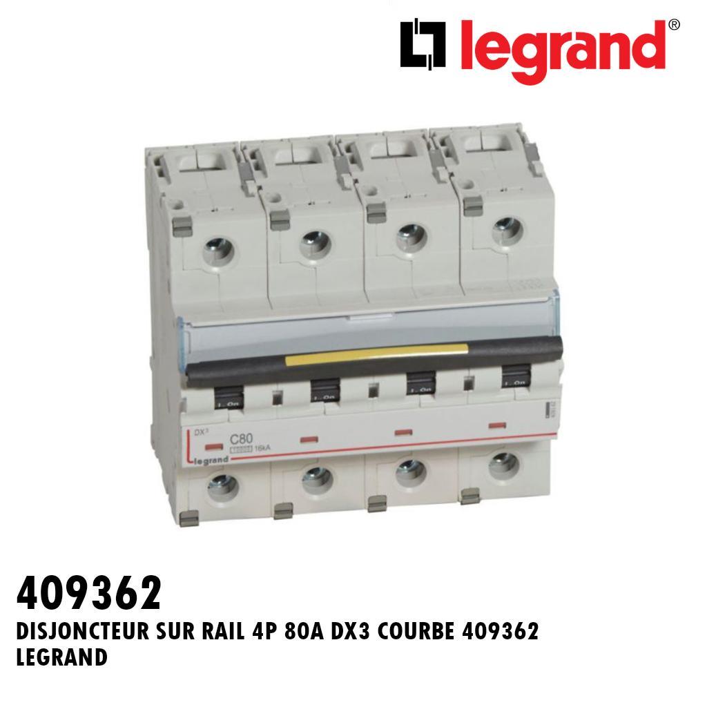 DISJONCTEUR SUR RAIL 4P 80A DX3 COURBE 409362 LEGRAND