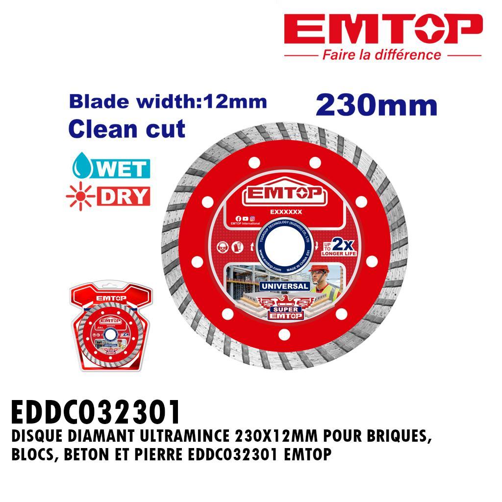 DISQUE DIAMANT ULTRAMINCE 230X12MM POUR BRIQUES, BLOCS, BETON ET PIERRE EDDC032301 EMTOP