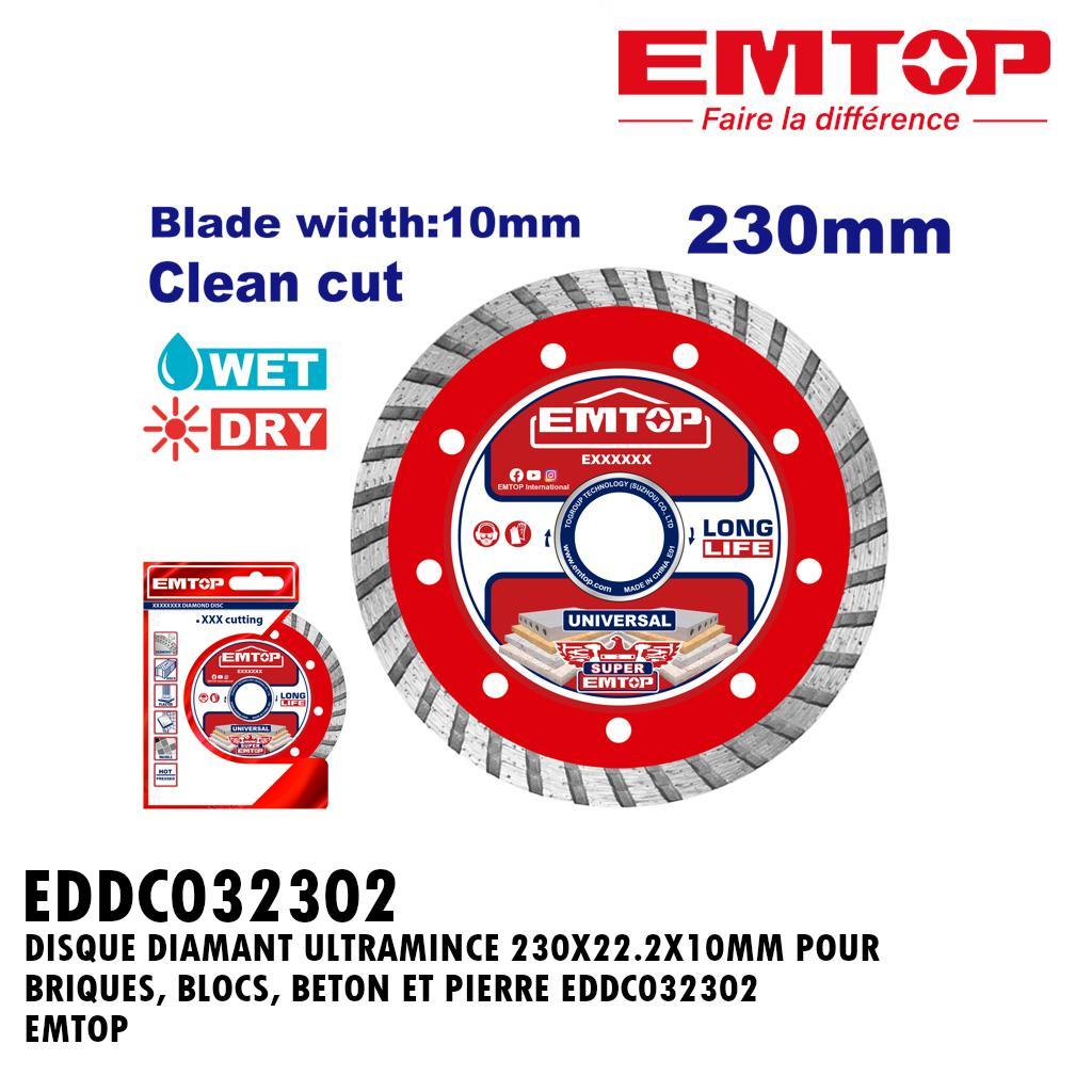 DISQUE DIAMANT ULTRAMINCE 230X22.2X10MM POUR BRIQUES, BLOCS, BETON ET PIERRE EDDC032302 EMTOP