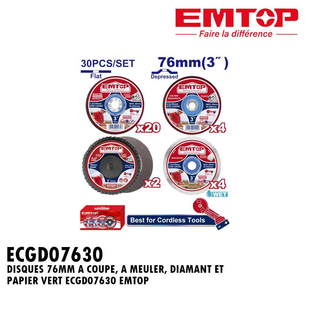 DISQUES 76MM A COUPE, A MEULER, DIAMANT ET PAPIER VERT ECGD07630 EMTOP