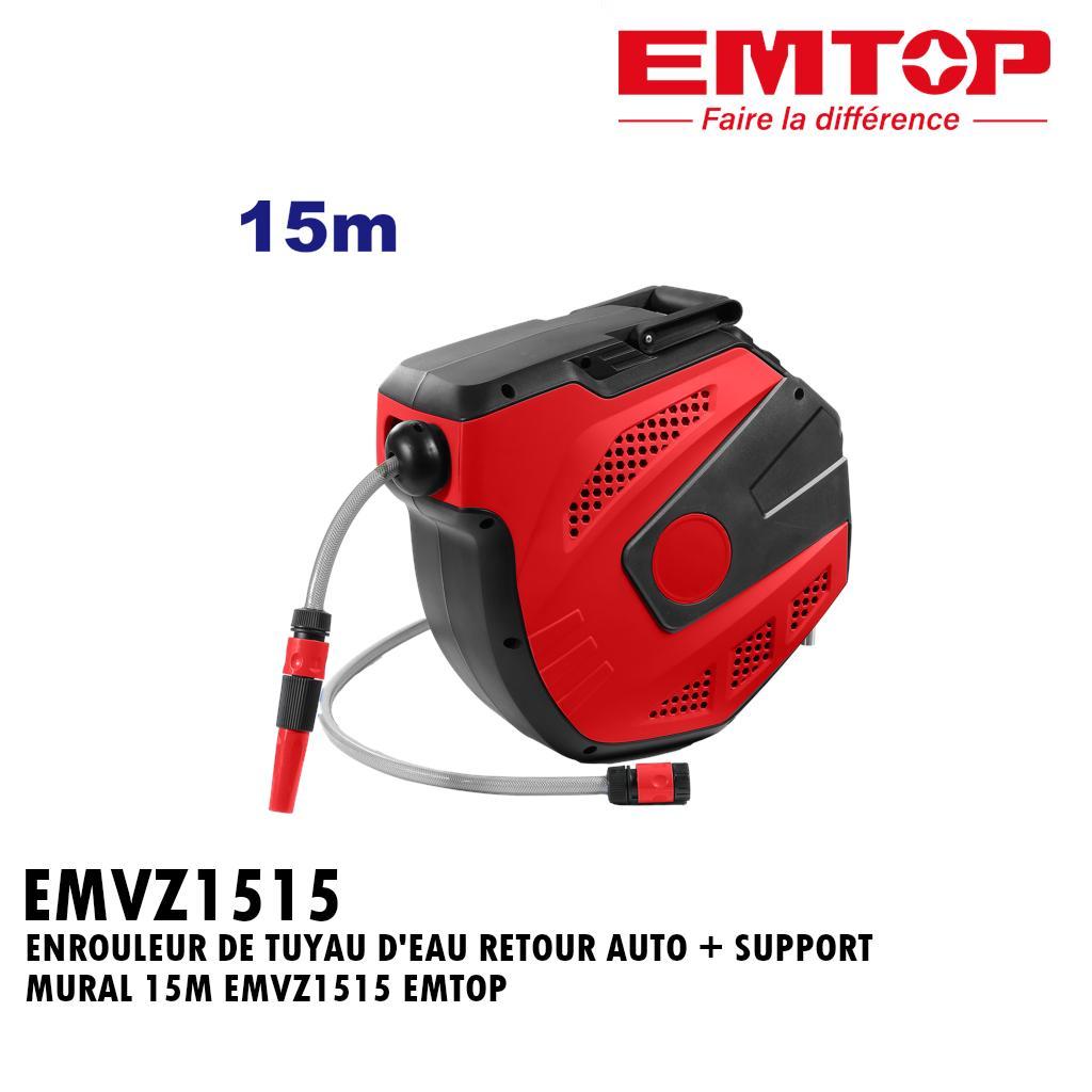 ENROULEUR DE TUYAU D’EAU RETOUR AUTO + SUPPORT MURAL 15M EMVZ1515 EMTOP