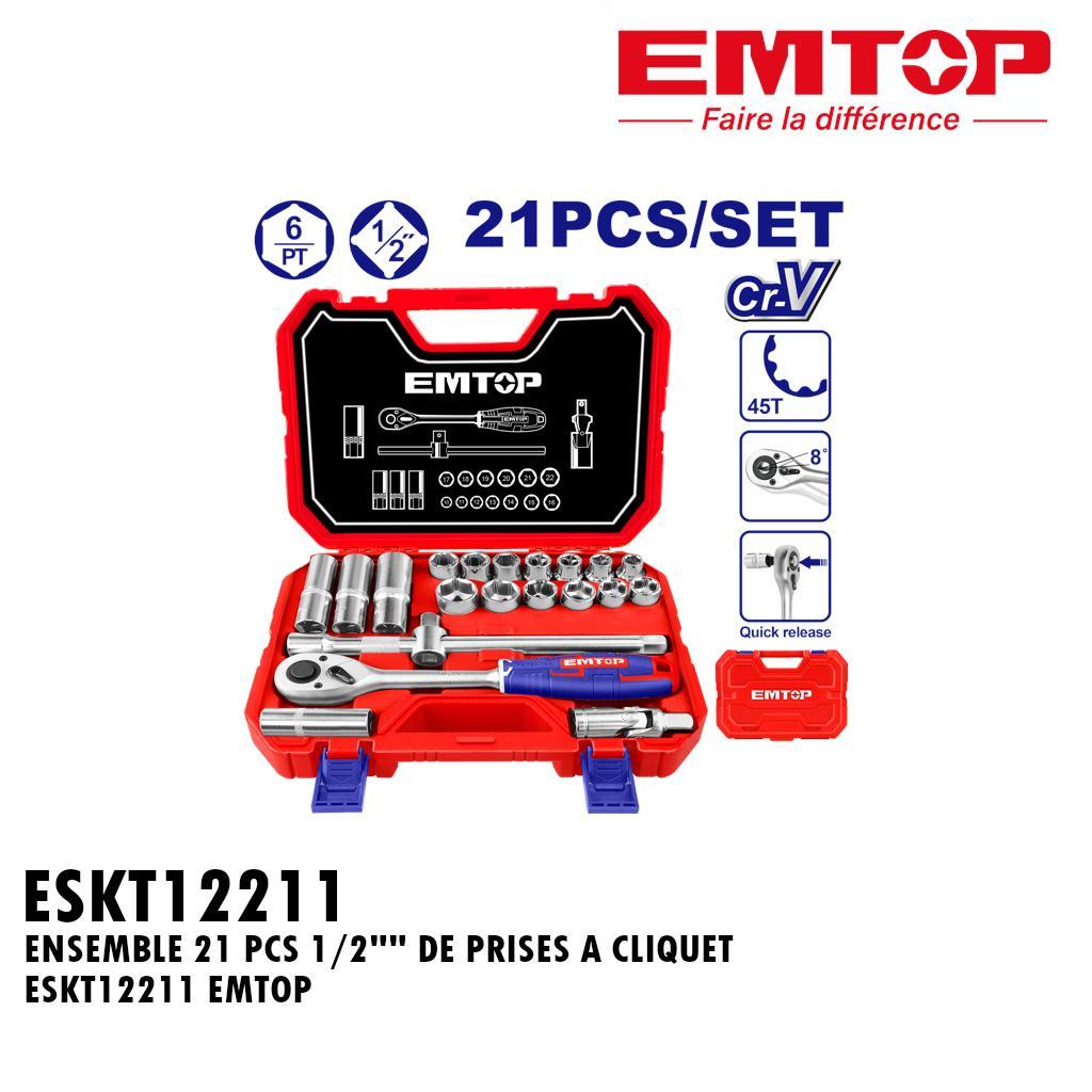 ENSEMBLE 21 PCS 1/2″ » DE PRISES A CLIQUET ESKT12211 EMTOP
