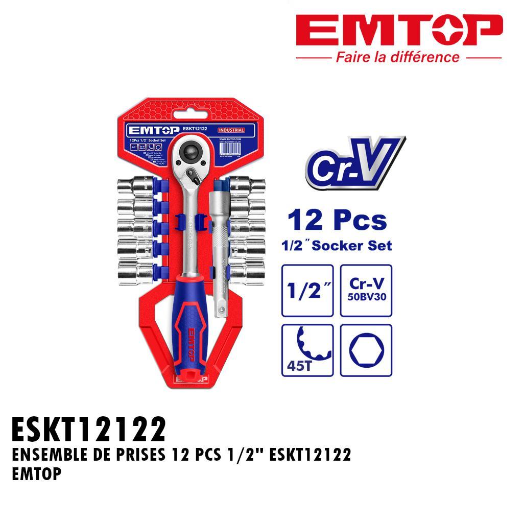 ENSEMBLE DE PRISES 12 PCS 1/2″ ESKT12122 EMTOP