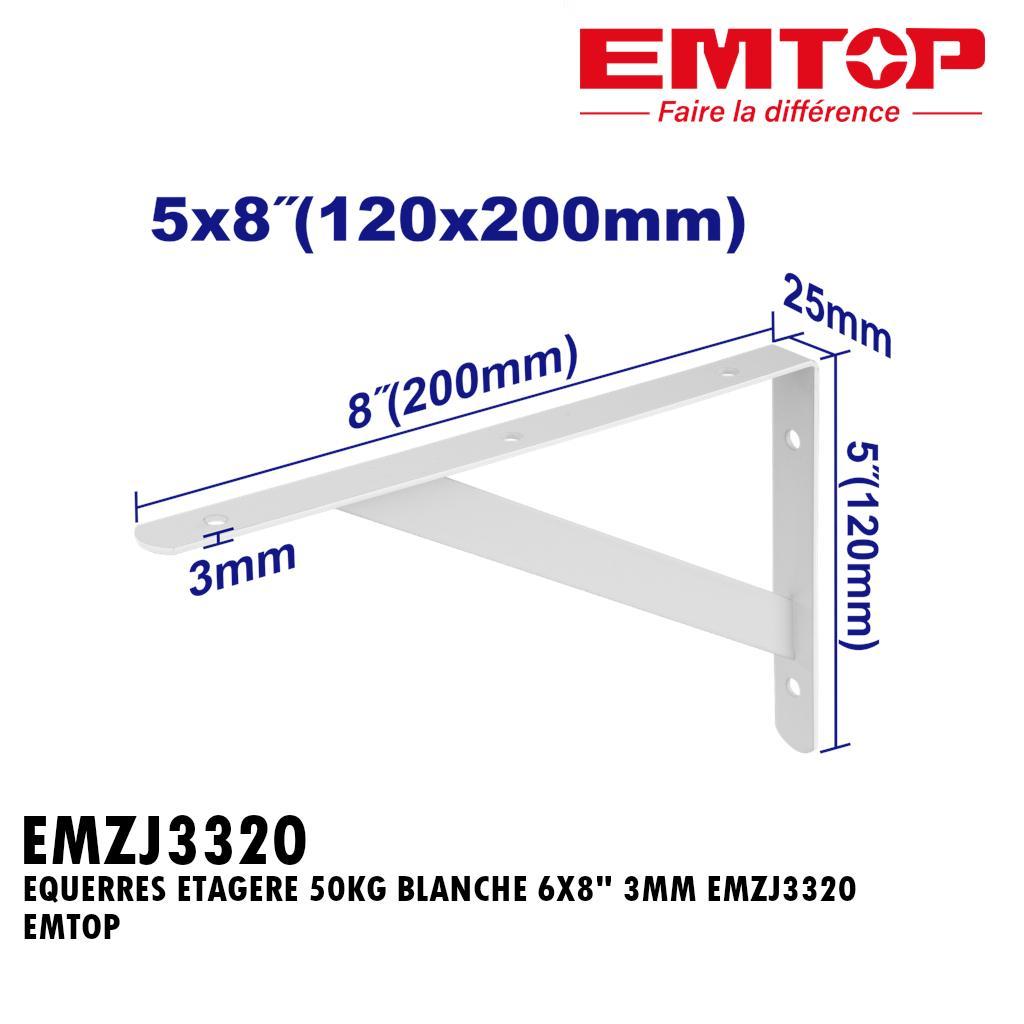 EQUERRES ETAGERE 50KG BLANCHE 7X12" 3MM EMZJ3330 EMTOP