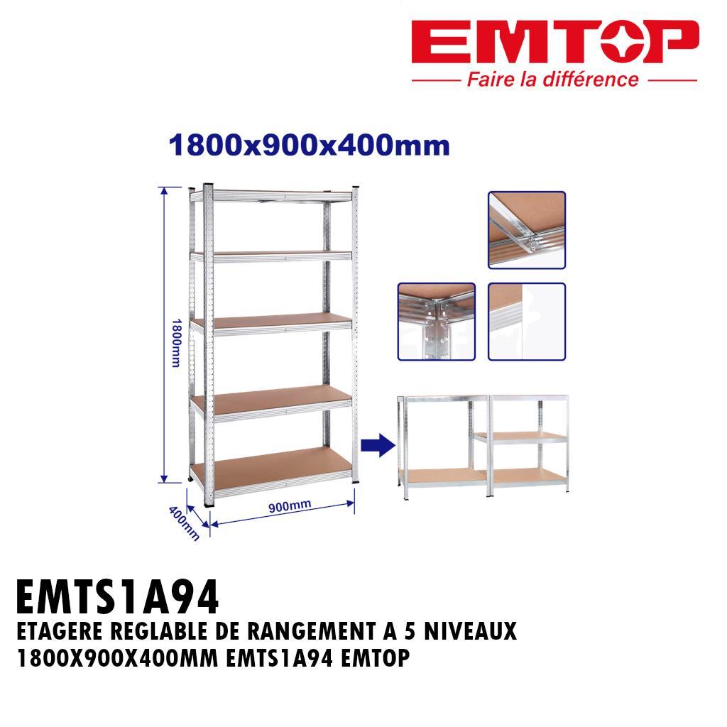 ETAGERE REGLABLE DE RANGEMENT A 5 NIVEAUX 1800X900X400MM EMTS1A94 EMTOP