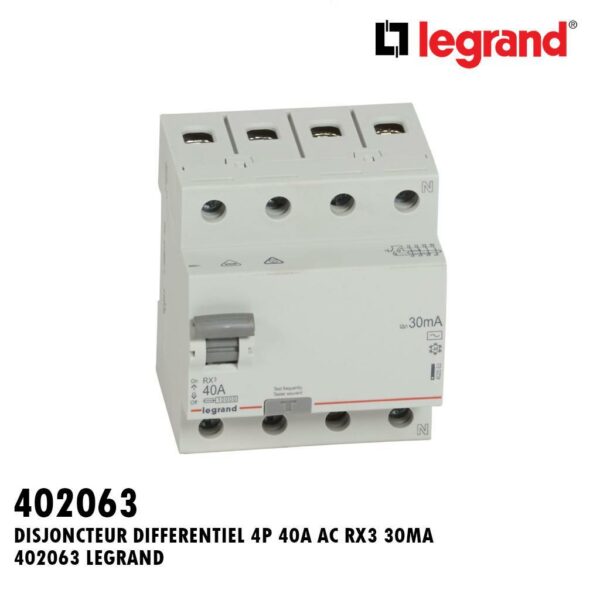 INTER DIFFERENTIEL 4P 40A AC RX3 30MA 402063 LEGRAND