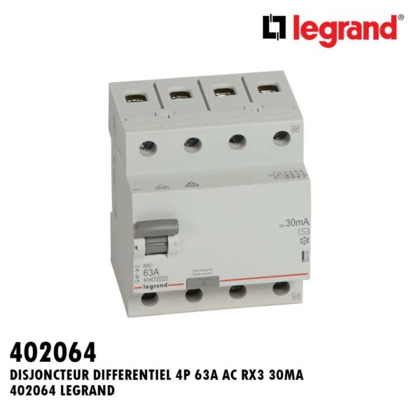 INTER DIFFERENTIEL 4P 63A AC RX3 30MA 402064 LEGRAND