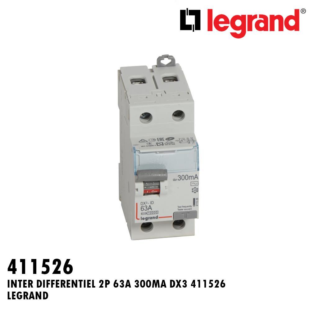 INTER DIFFERENTIEL 2P 63A 300MA DX3 411526 LEGRAND