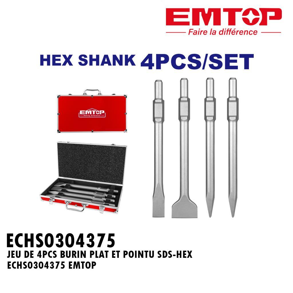 JEU DE 4PCS BURIN PLAT ET POINTU SDS-HEX ECHS0304375 EMTOP