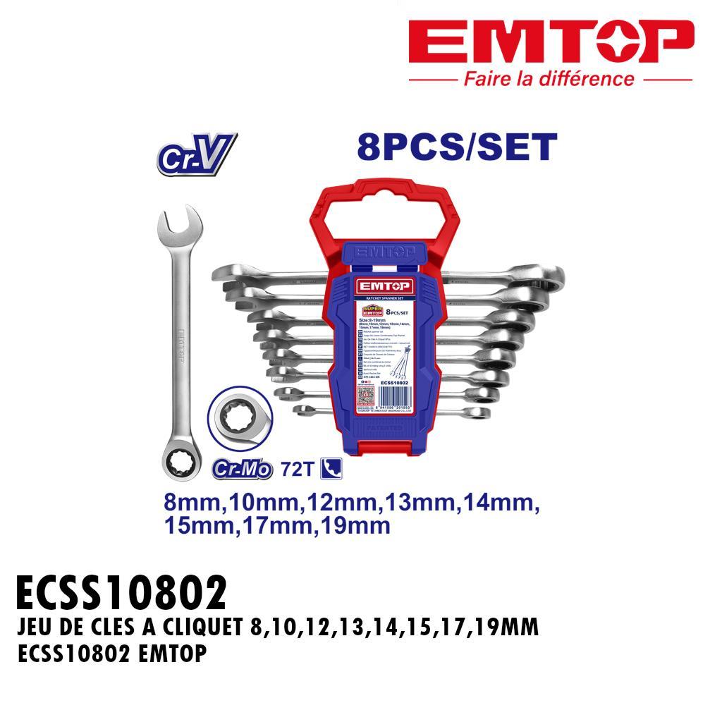 JEU DE CLES A CLIQUET 8,10,12,13,14,15,17,19MM ECSS10802 EMTOP