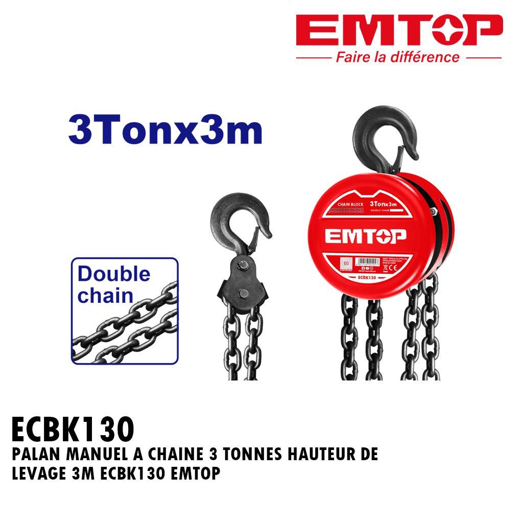 PALAN MANUEL A CHAINE 3 TONNES HAUTEUR DE LEVAGE 3M ECBK130 EMTOP