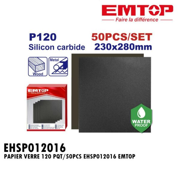 PAPIER VERRE 120 PQT/50PCS EHSP012016 EMTOP