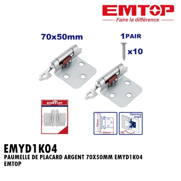PAUMELLE DE PLACARD ARGENT 70X50MM EMYD1K04 EMTOP