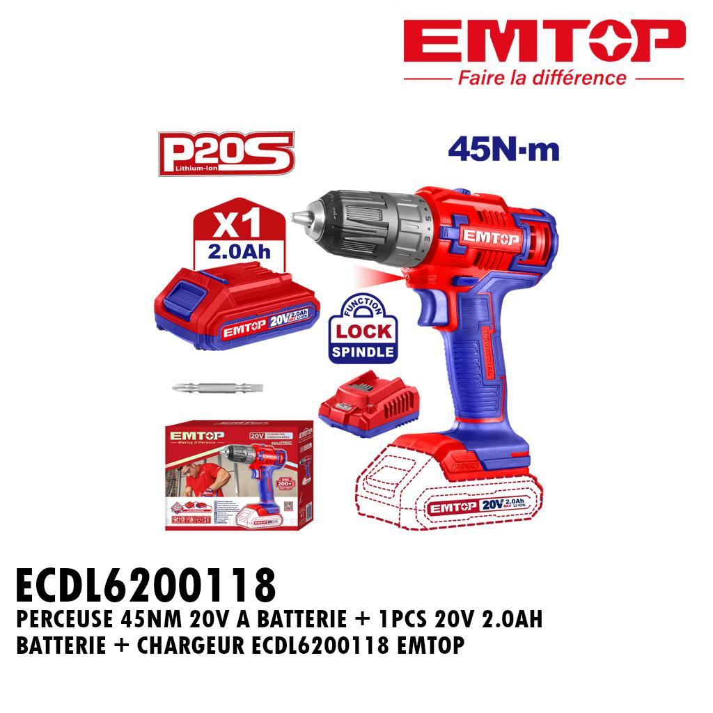 PERCEUSE 45NM 20V A BATTERIE + 1PCS 20V 2.0AH BATTERIE + CHARGEUR ECDL6200118 EMTOP