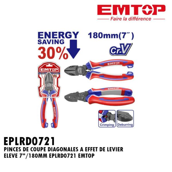 PINCES DE COUPE DIAGONALES A EFFET DE LEVIER ELEVE 7″/180MM EPLRD0721 EMTOP