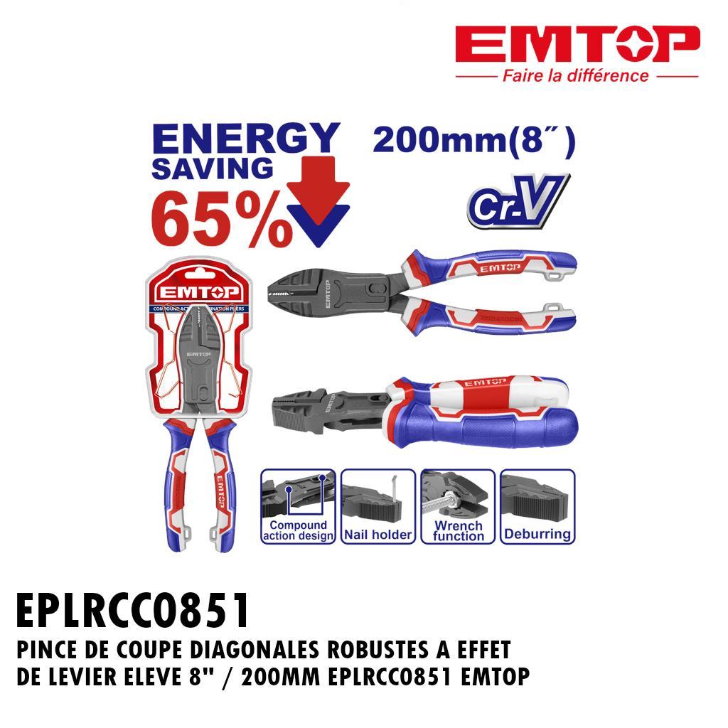 PINCE DE COUPE DIAGONALES ROBUSTES A EFFET DE LEVIER ELEVE 8″ / 200MM EPLRCC0851 EMTOP