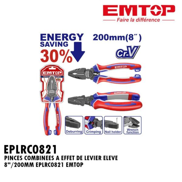 PINCES COMBINEES A EFFET DE LEVIER ELEVE 8″/200MM EPLRC0821 EMTOP