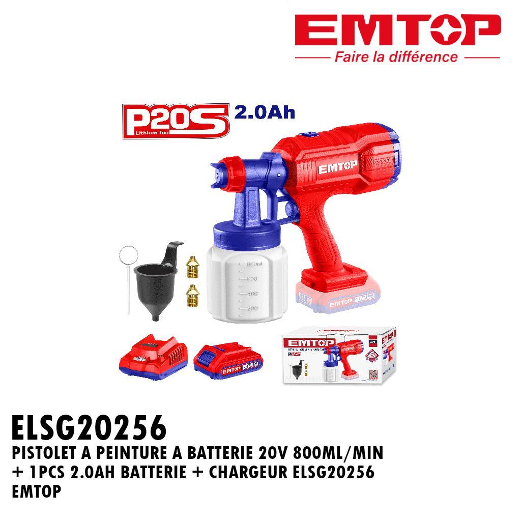 PISTOLET A PEINTURE POLYVALENT A BATTERIE 20V – 800ML/MIN ELSG20256 EMTOP