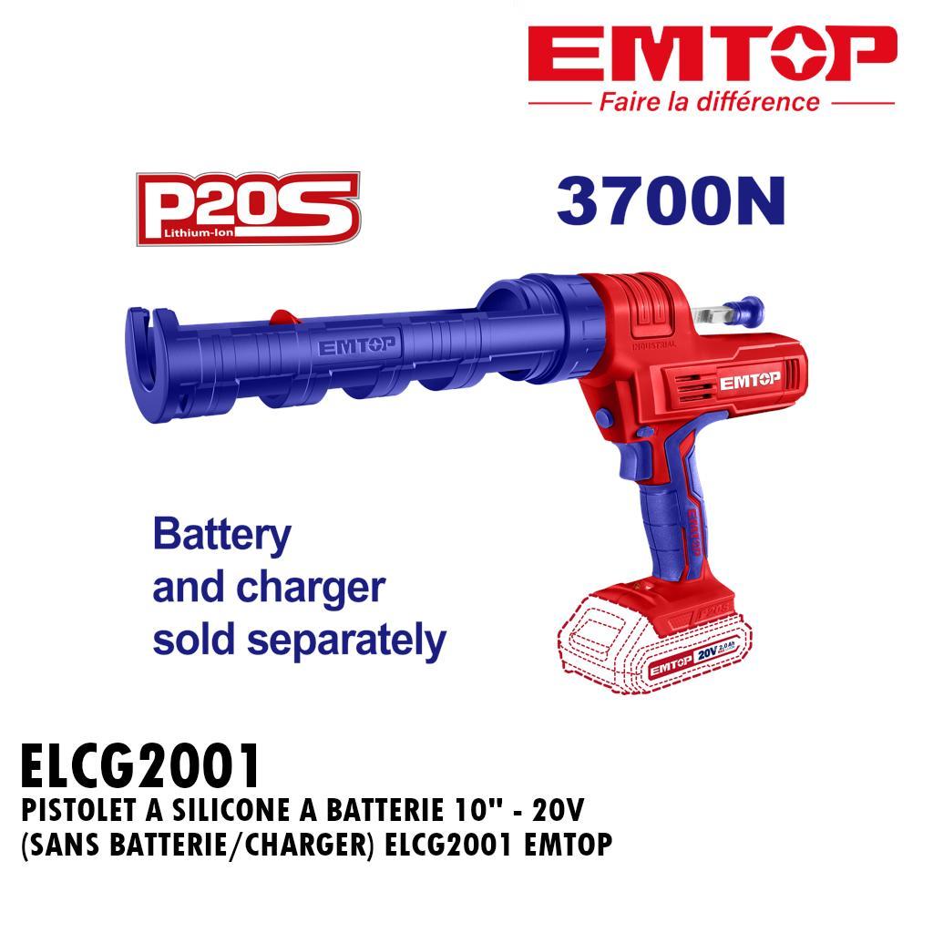 PISTOLET A SILICONE A BATTERIE 10″ – 20V (SANS BATTERIE/CHARGER) ELCG2001 EMTOP
