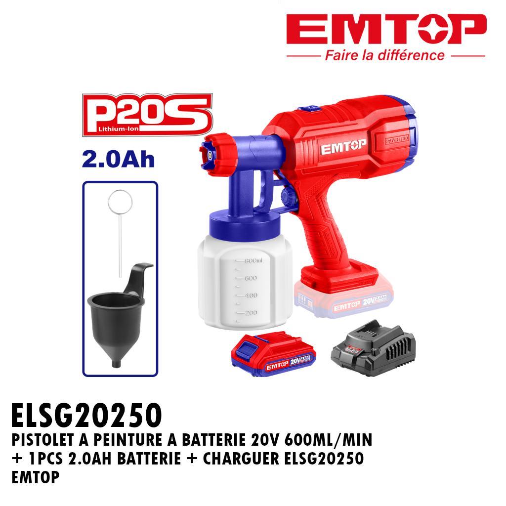 PISTOLET DE PULVERISATION 600ML/MIN 800ML CAP. 2.0AH LI-ION ELSG20250 EMTOP