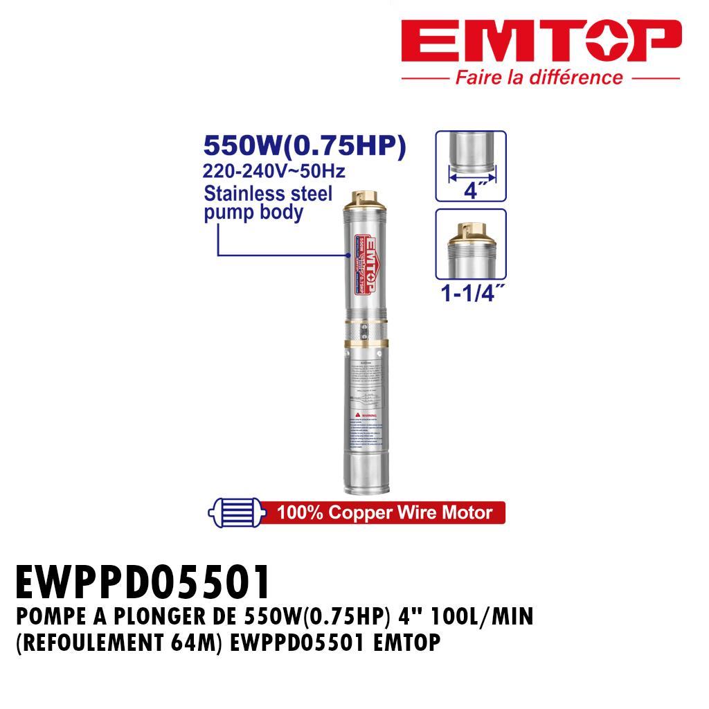 POMPE DE PUITS PROFOND DE 4″ 550W(0.75HP) 6.0M³/H EWPPD05501 EMTOP