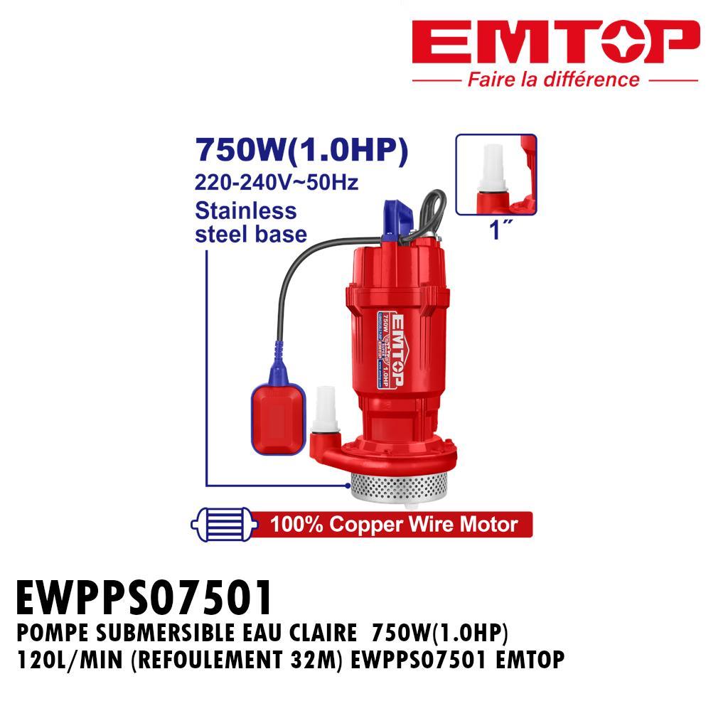POMPE SUBMERSIBLE 750W(1.0HP) 120L/MIN EWPPS07501 EMTOP