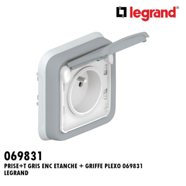 PRISE + T GRIS ENC ETANCHE + GRIFFE PLEXO 069831 LEGRAND