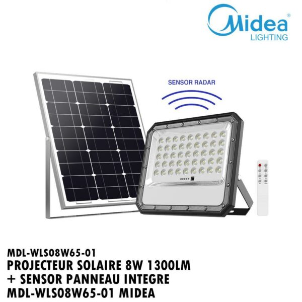 PROJECTEUR SOLAIRE 8W 1300LM + SENSOR PANNEAU INTEGRE MDL-WLS08W65-01 MIDEA