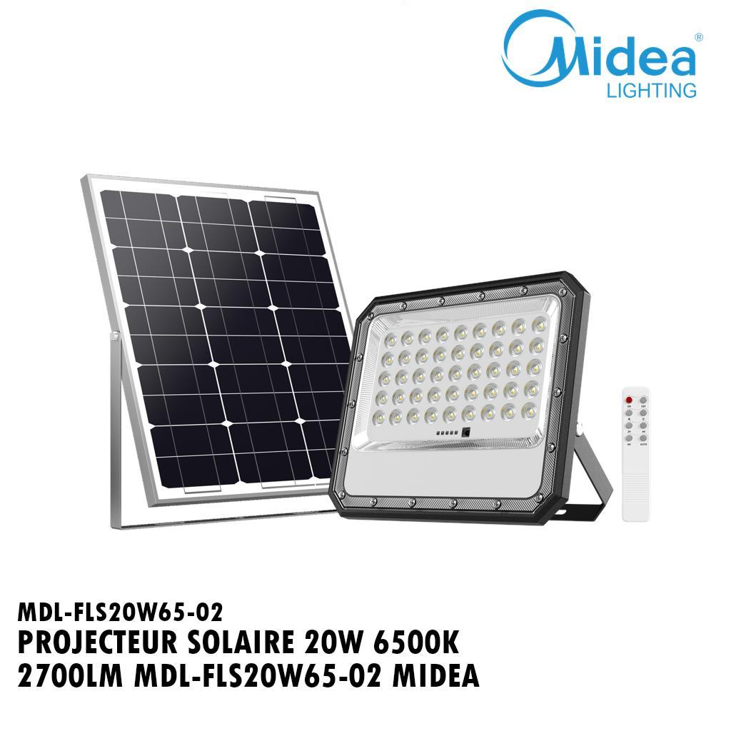 PROJECTEUR SOLAIRE 20W 6500K 2700LM MDL-FLS20W65-02 MIDEA