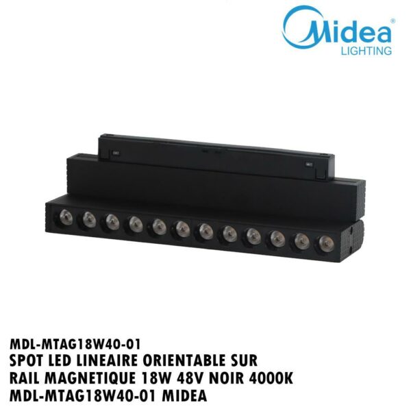 SPOT LED LINÉAIRE ORIENTABLE SUR RAIL MAGNÉTIQUE 18W 48V NOIR 4000K MDL-MTAG18W4