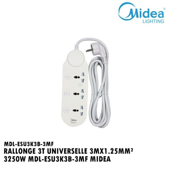 RALLONGE 3T UNIVERSELLE 3MX1.25MM² 3250W MDL-ESU3K3B-3MF MIDEA