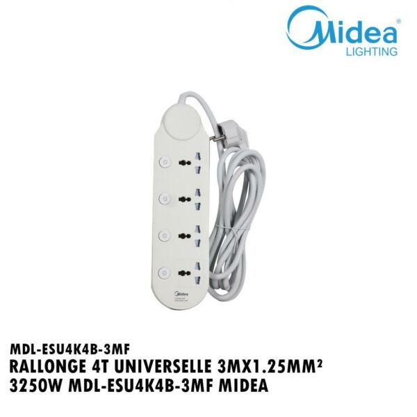 RALLONGE 4T UNIVERSELLE 3MX1.25MM² 3250W MDL-ESU4K4B-3MF MIDEA