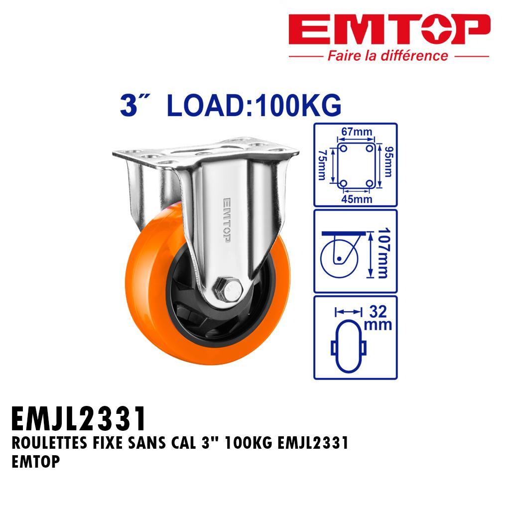 ROULETTES FIXE SANS CAL 3″ 100KG EMJL2331 EMTOP