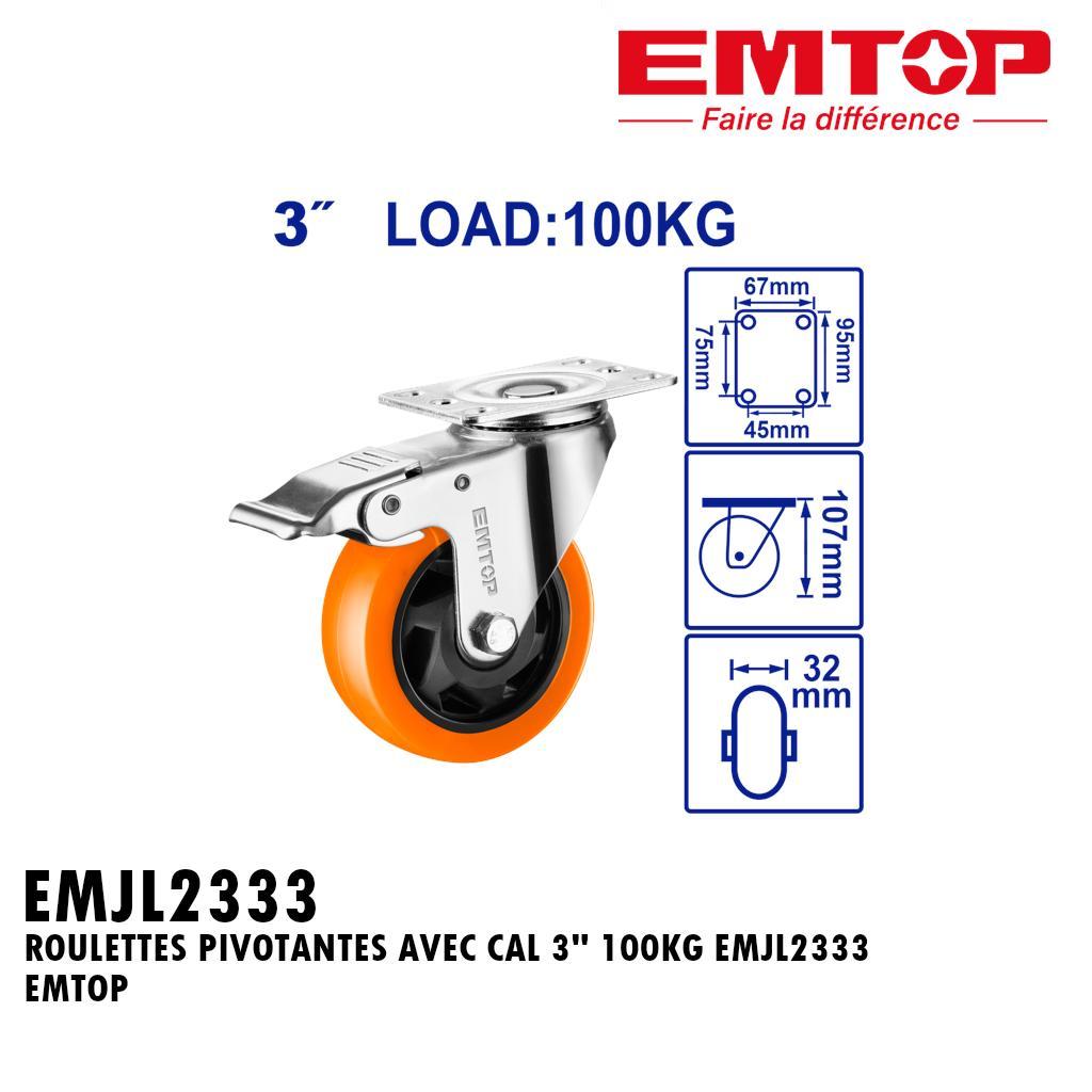 ROULETTES PIVOTANTES AVEC CAL 3″ 100KG EMJL2333 EMTOP